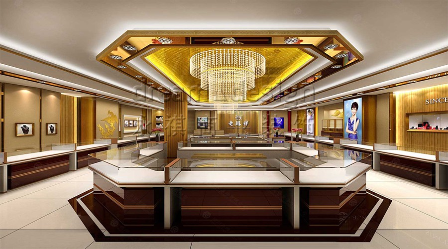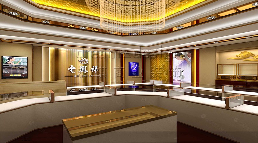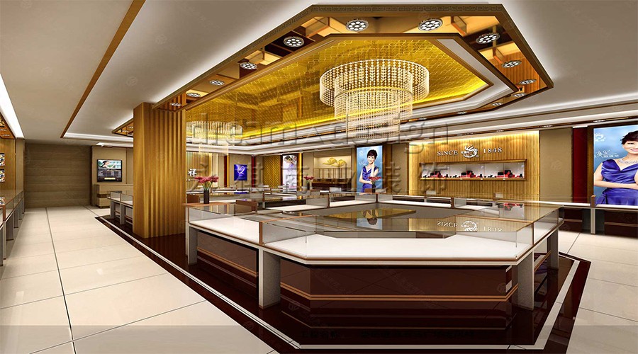 永祺商裝設(shè)計師將空間大面積留白搭配,明亮的燈光再點綴輕奢元素,給整個空間帶來精致、細膩的美感。金色奢華的搭配塑造經(jīng)典,從而達到了珠寶店高雅大氣的感覺。