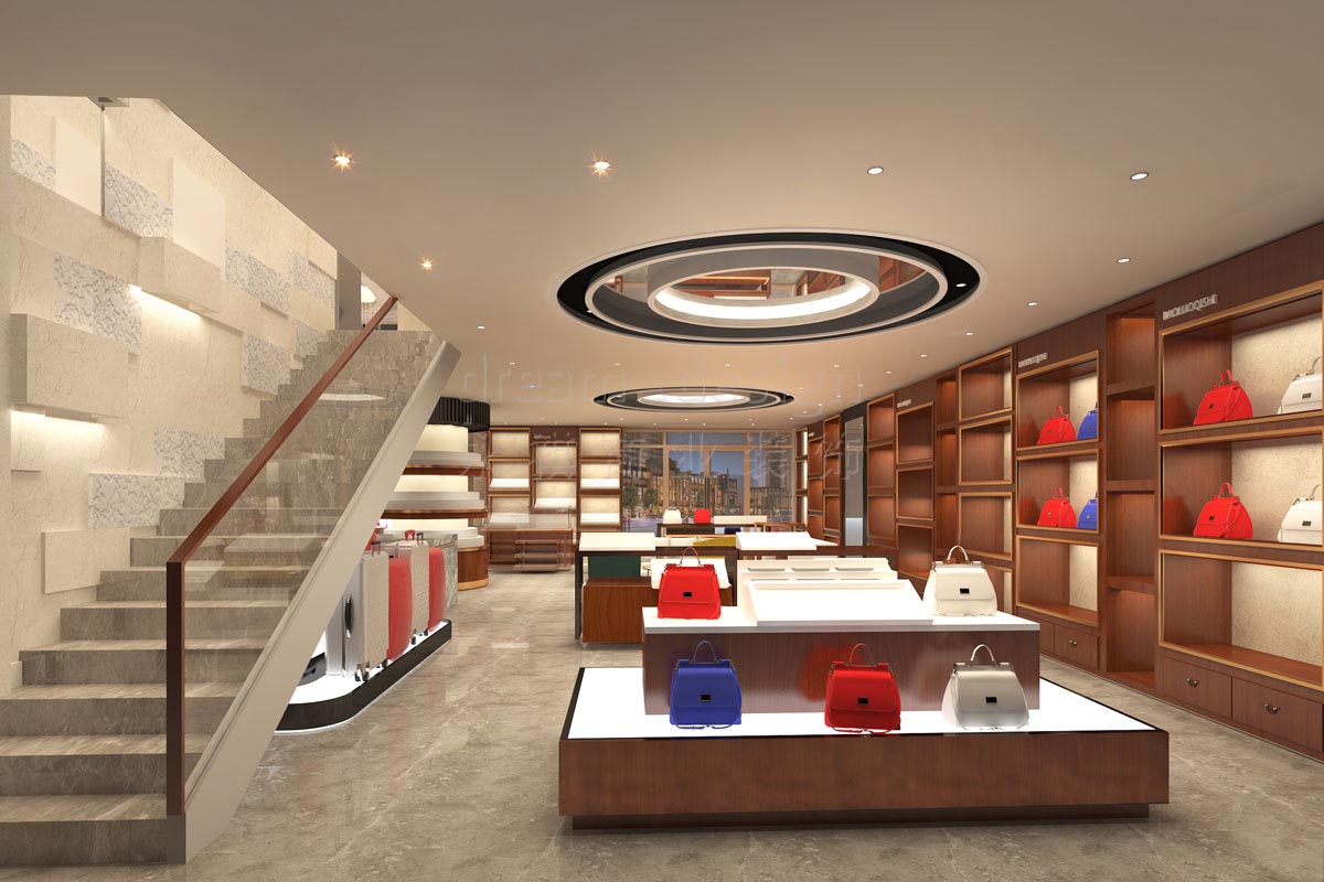 作為高檔皮具的展示區(qū),將現(xiàn)代簡(jiǎn)約作為整個(gè)空間的設(shè)計(jì)風(fēng)格。紅木色柜子搭配香檳金造型線條凸顯柜子的層次感與空間感。環(huán)形中島柜體現(xiàn)空間的靈動(dòng)性,冷暖交替的照明使整個(gè)空間自然溫馨。二樓的柜體主要是采用線條感較強(qiáng)的黑色金屬,簡(jiǎn)約的設(shè)計(jì)顯得大氣通透。