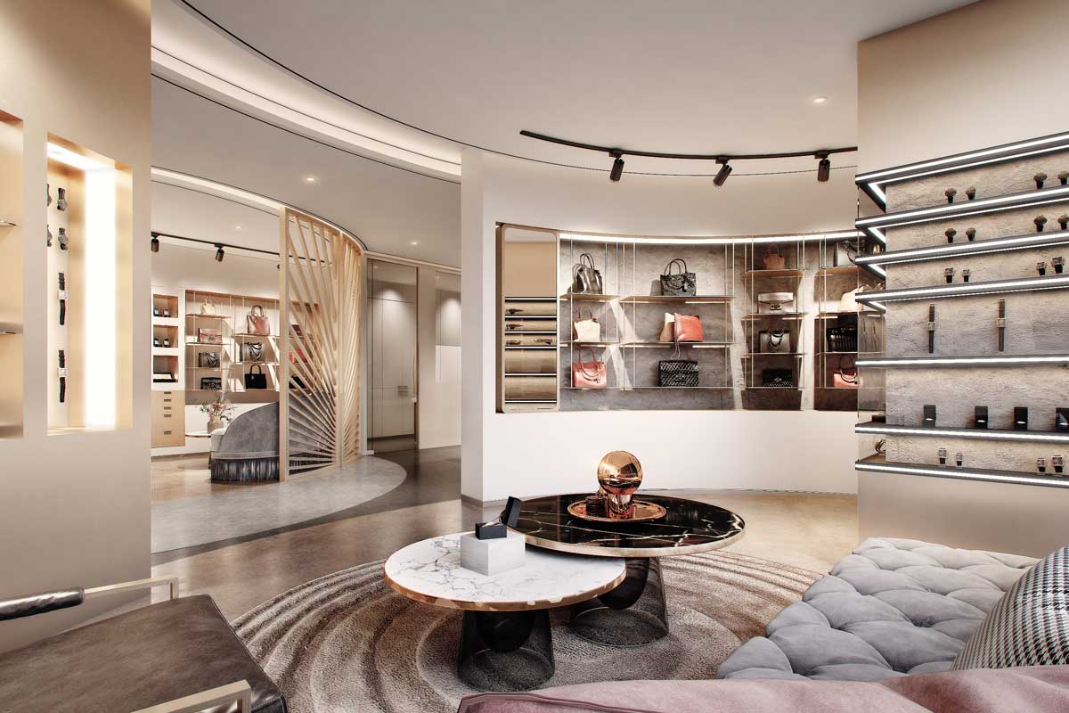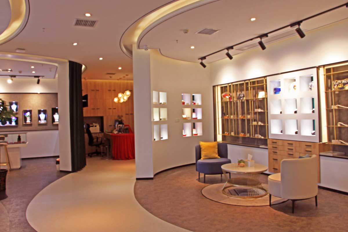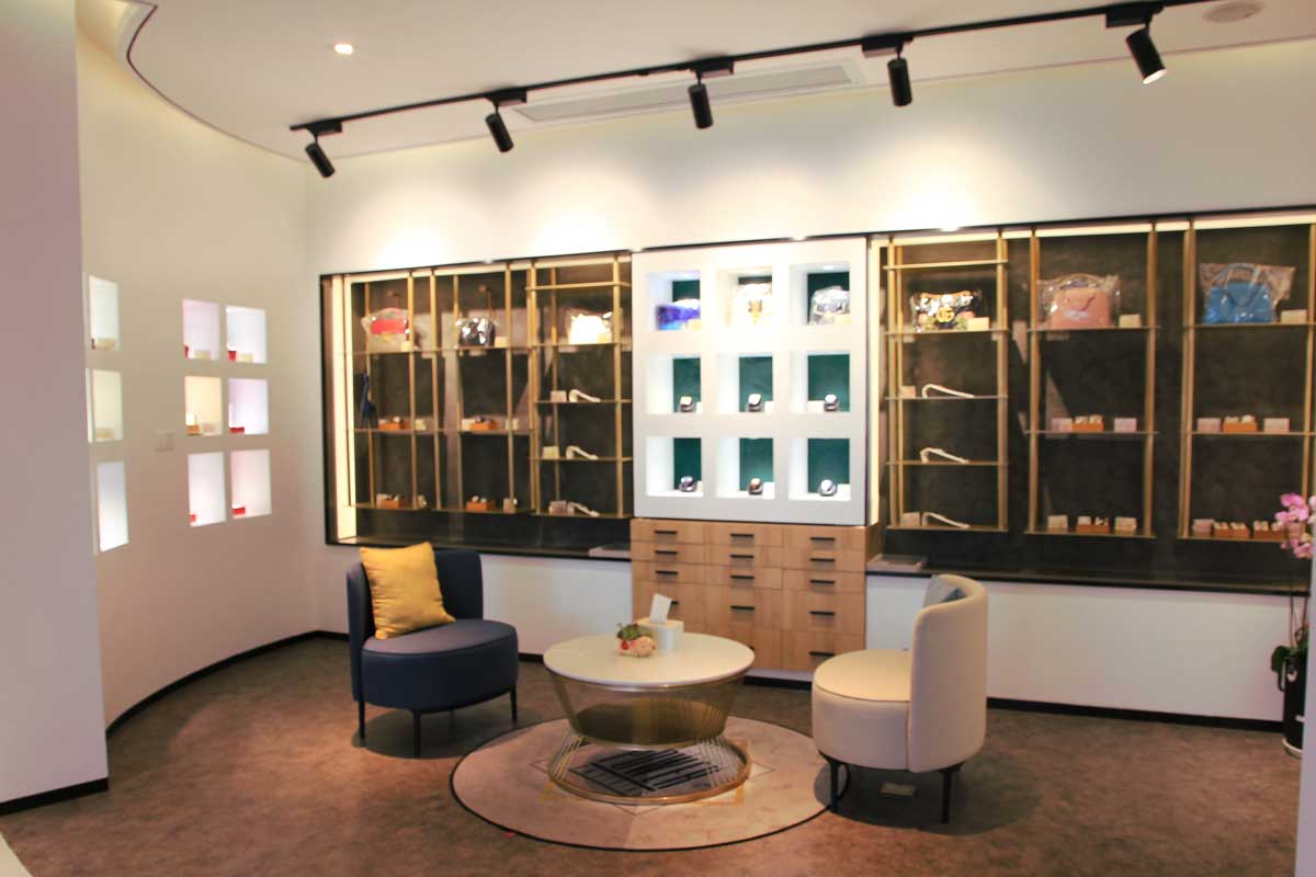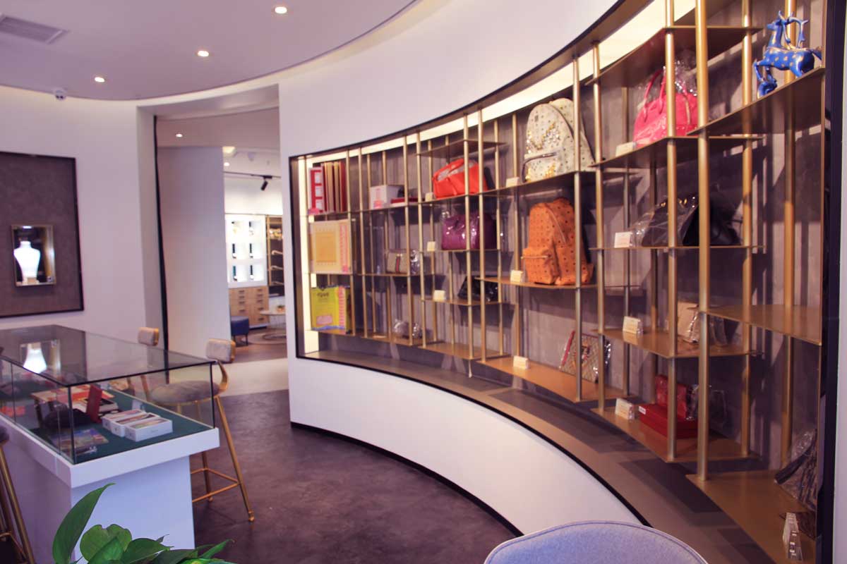 永祺此次設(shè)計打破陳規(guī),主打國際輕奢風格,采用“弧線”的元素分割空間,增強空間的流動感。整個空間使用了大量的玫瑰金,突出奢侈品的品質(zhì)感。展柜的設(shè)計以“產(chǎn)品陳列”為第一要義,全方位的展示產(chǎn)品的特性,希望給用戶提供更優(yōu)質(zhì)的購物體驗。