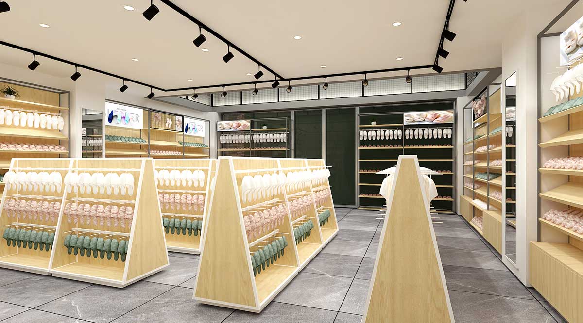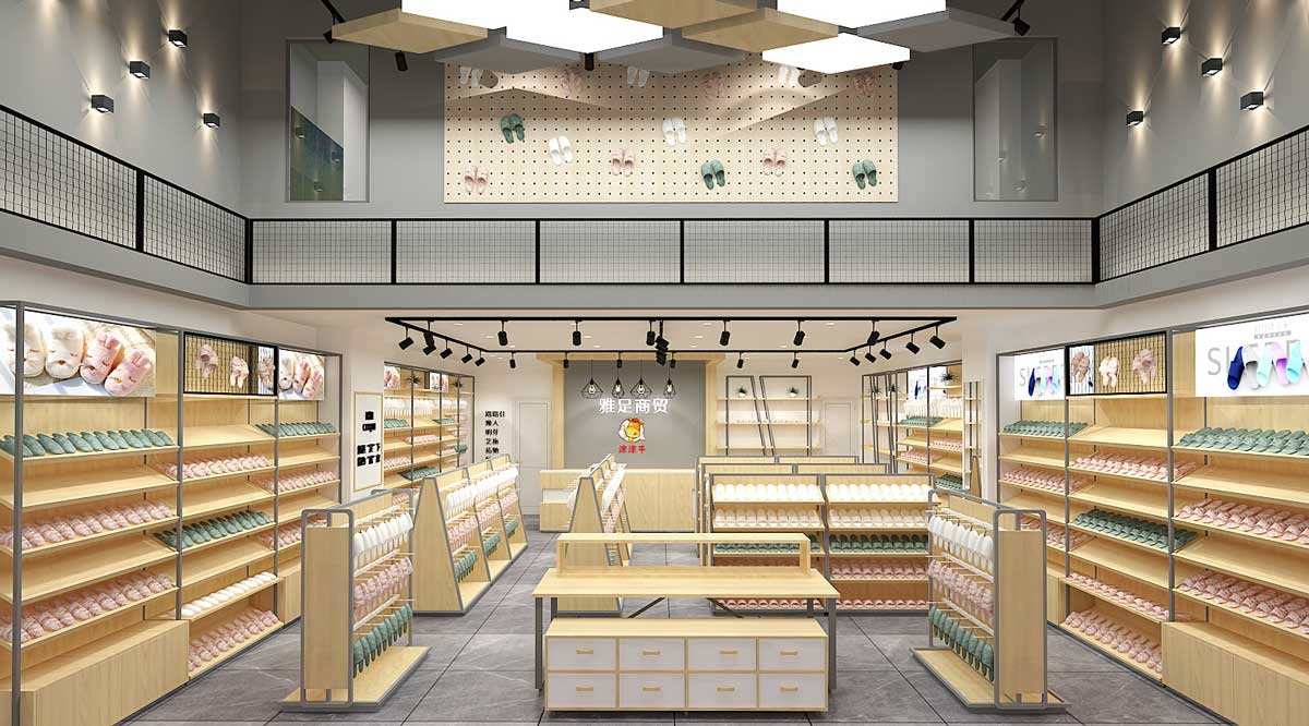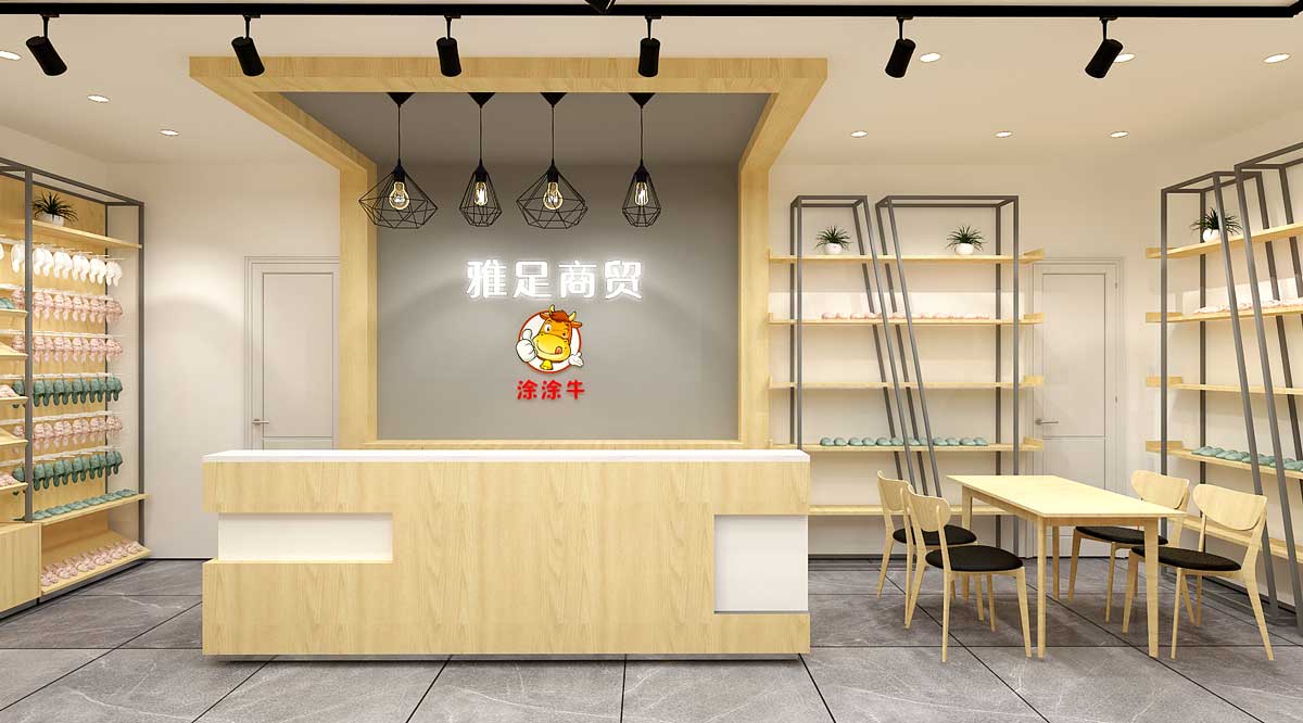 行業(yè)細(xì)分已成為趨勢,糊涂鞋業(yè)是一種新型業(yè)態(tài),寬敞的過道、整齊的陳列、簡約的色調(diào),都是永祺商裝設(shè)計(jì)師為其堅(jiān)持的空間法則,簡潔的純色地磚,天然的木質(zhì)材料,合理的空間布局,給顧客眼前一亮的感覺。